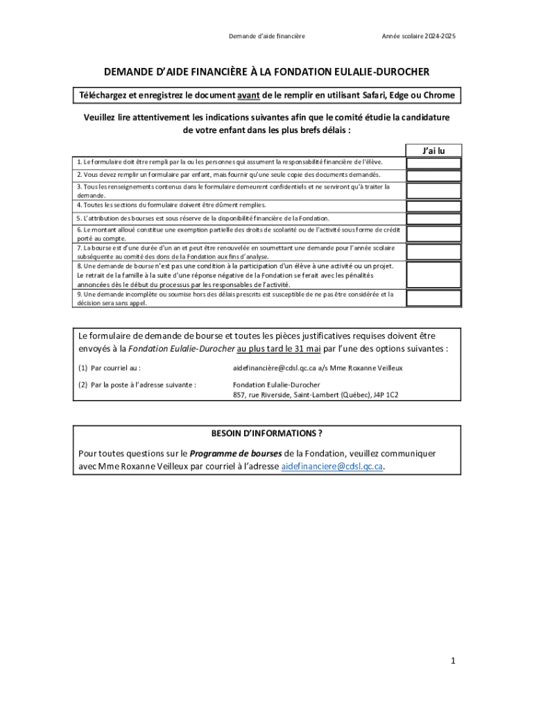 Demanded aide financireAnne Claire 20242025DEMANDE AIDE FINANCIAL LA FOUNDATION EULALIEDUROCHER