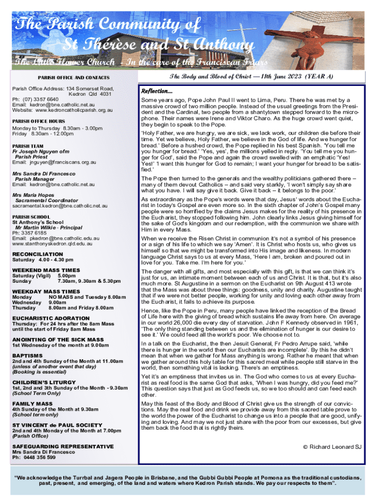 Get the free Parish Newsletter -The Body and Blood of Christ - 11 June 2023.pub