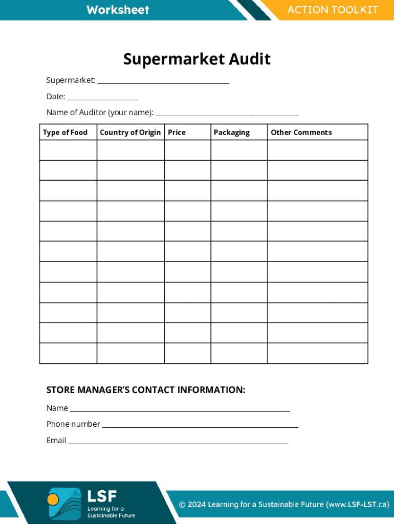 Fill out your supermarket audit- student sheet online with pdfFiller!