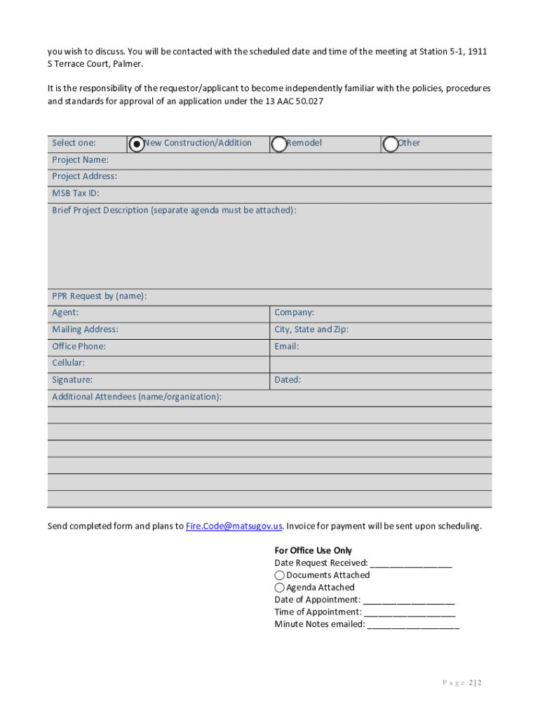 To fill out the preliminary plan review meeting form, individuals usually need to provide project details, including location, scope of the project, contact information, and any specific concerns or requests for discussion during the meeting.