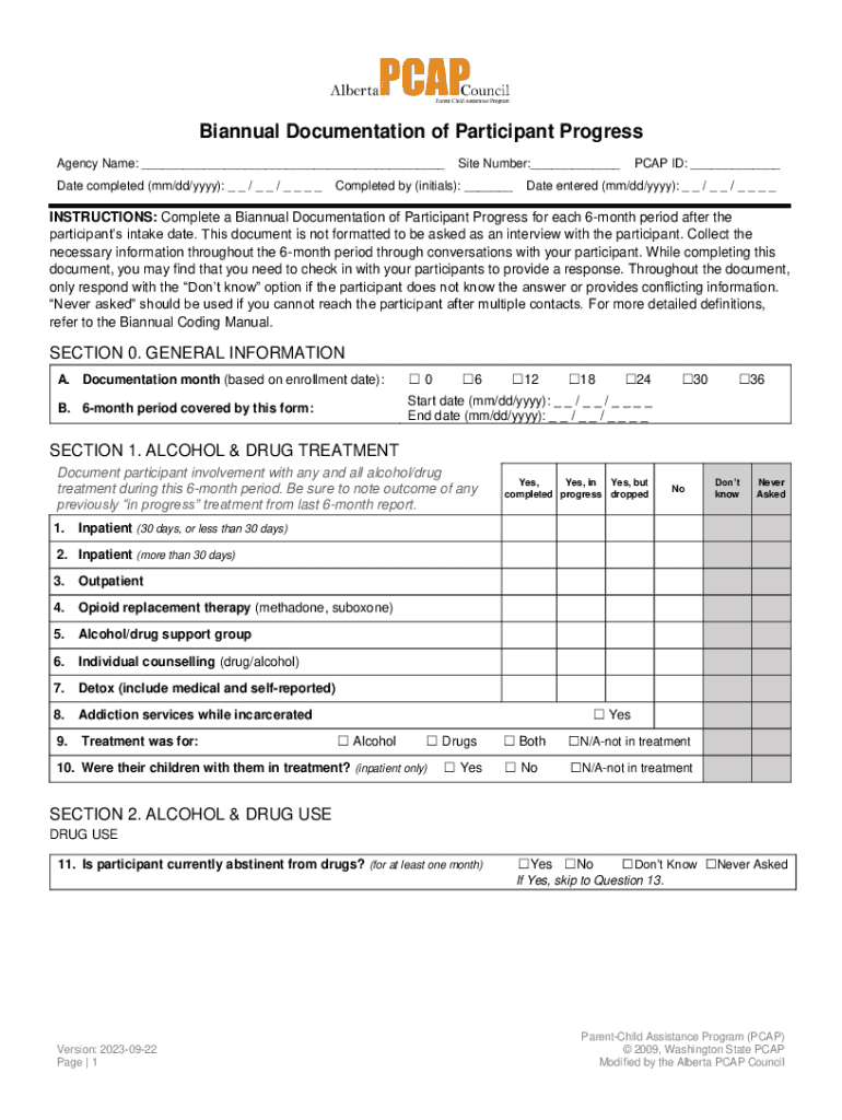Get the free Biannual Documentation of Participant Progress - Alberta PCAP ...