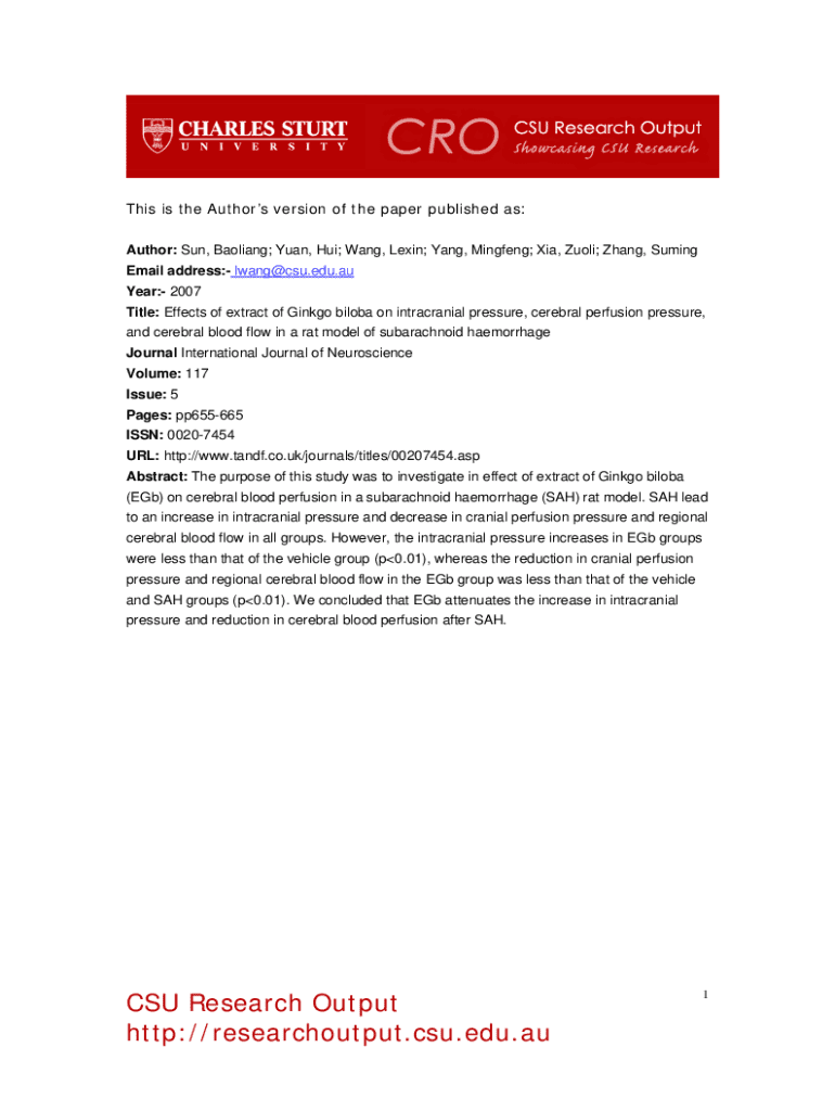 Get the free Effects of extract of Ginkgo biloba on intracranial pressure, ...