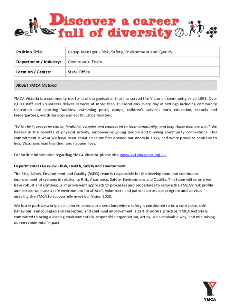 Explore the strategic leadership role of Group Manager for Risk, Safety, Environment, and Quality at YMCA Victoria. Drive policies and ensure compliance by leading teams effectively.