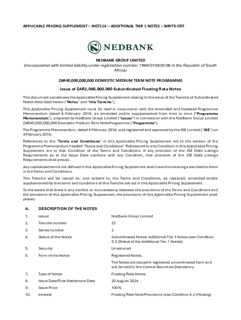 Get the free applicable pricing supplementngt114additional tier 1 ...