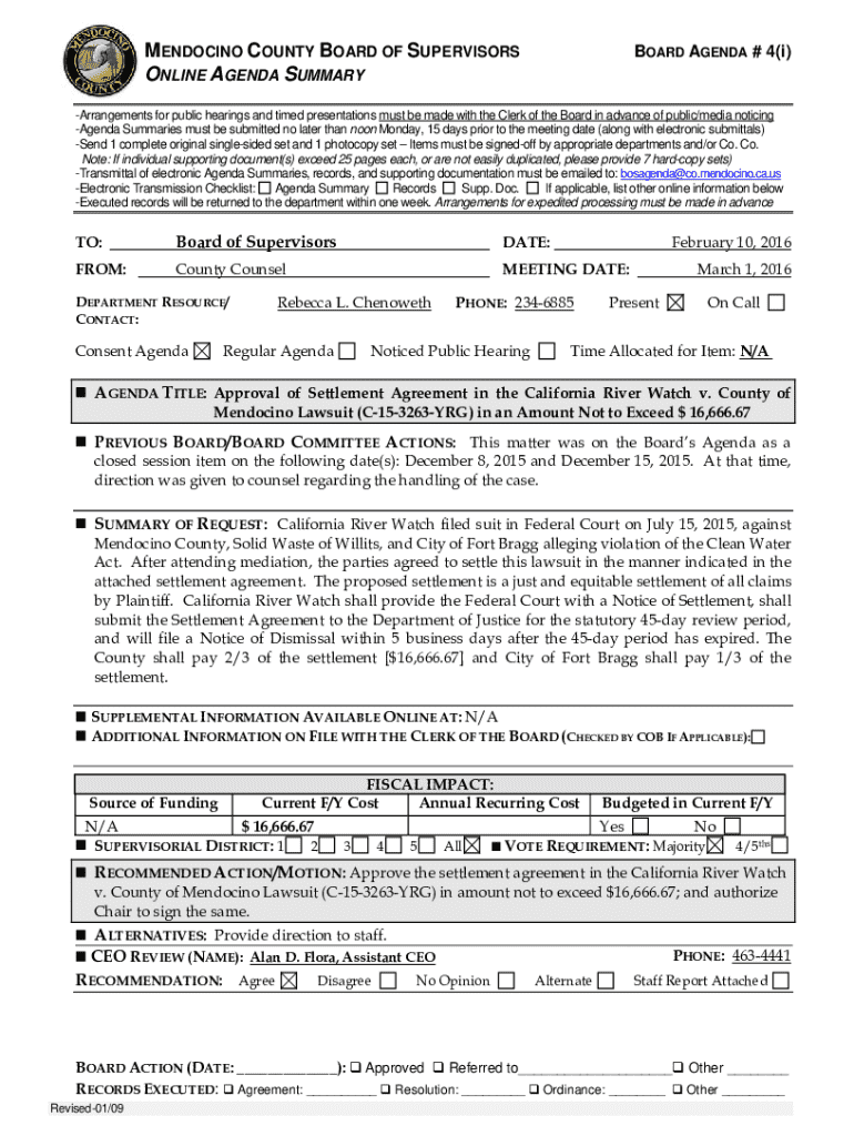 MENDOCINO COUNTY BOARD OF SUPERVISORS ONLINE AGENDA SUMMARYBOARD AGENDA # 4(i)Arrangements for public hearings and timed presentations must be made with the Clerk of the Board in advance of public/media