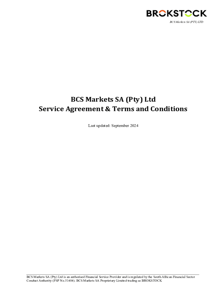 Get the free Bcs Markets Sa Service Agreement & Terms and Conditions