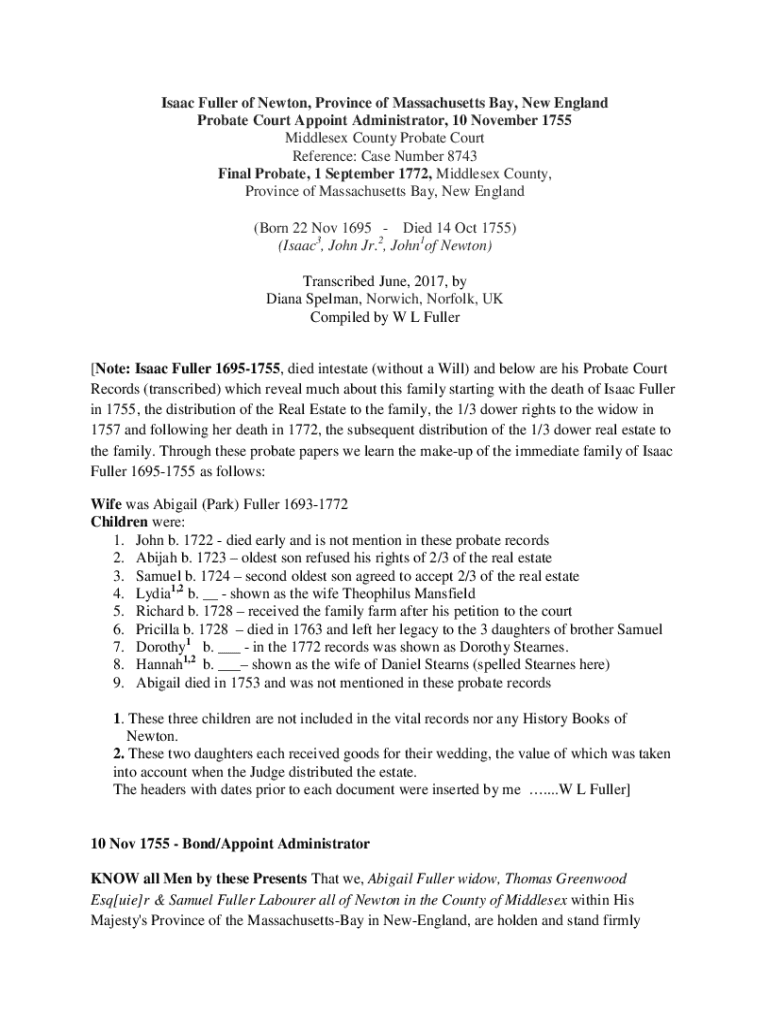 Get the free Isaac Fuller of Newton, Province of Massachusetts Bay, New ...