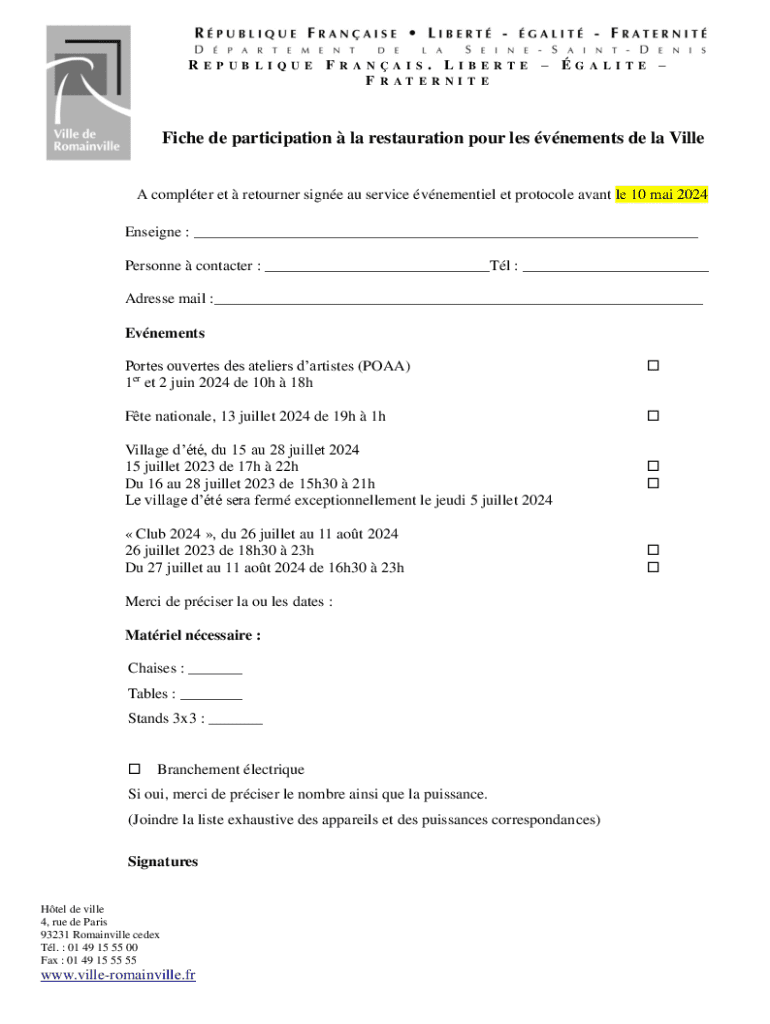 FRATERNITEFiche de participation la restoration pour LES elements de la Villa