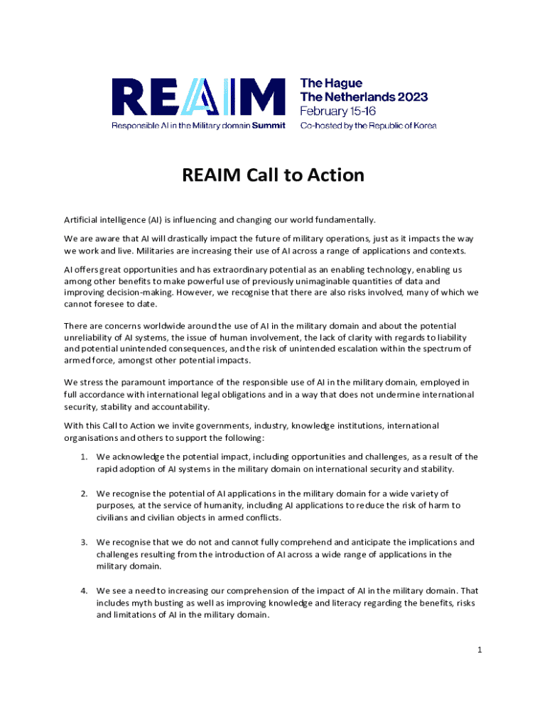 This document outlines the need for responsible use of artificial intelligence (AI) in military operations, emphasizing the opportunities and challenges posed by AI technology and the importance of