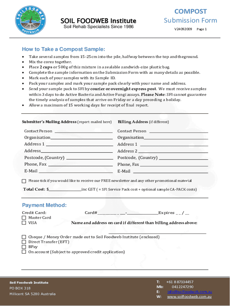 COMPOST Submission Foresail FOODIE Institute Soil Rehab Specialists Since 1986V24092009Page 1How to Take a Compost Sample: Take several samples from 1525 cm into the pile, halfway between the top