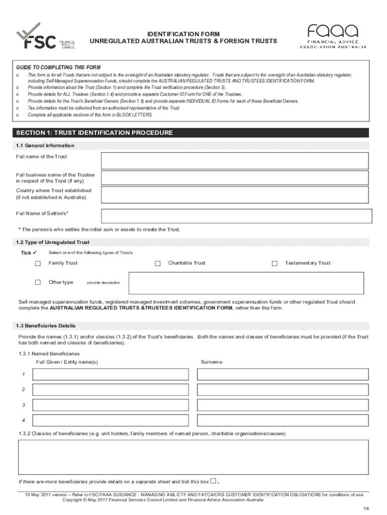 Get the free Identification Form Unregulated Australian Trusts & Foreign Trusts