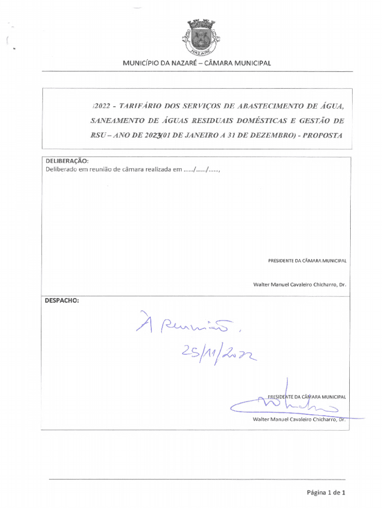MUNICIPAL DA NAGAR CLARA MUNICIPAL/2022 TARIFF DOS SERVOS DE ABASTECIMENTO DE GUA, SANEAMENTO DEG UAS RESIDUALS DOMESTICS E GUSTO DE RSU ANO DE 2023(01 DE JANEIRO A 31 DE DECEMBER) PROPOSED DELIBERATE:
