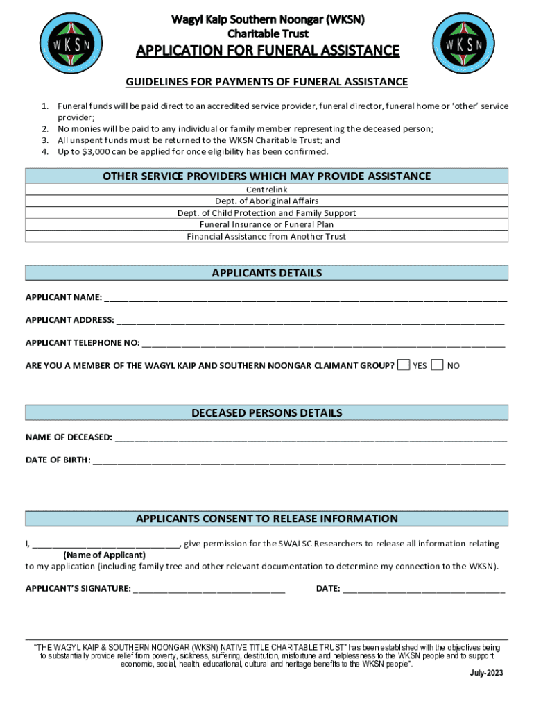 GUIDELINES FOR PAYMENTS OF FUNERAL ASSISTANCE 1. Funeral funds will be paid direct to an accredited service provider, funeral director, funeral home or other service provider; 2. No monies will be