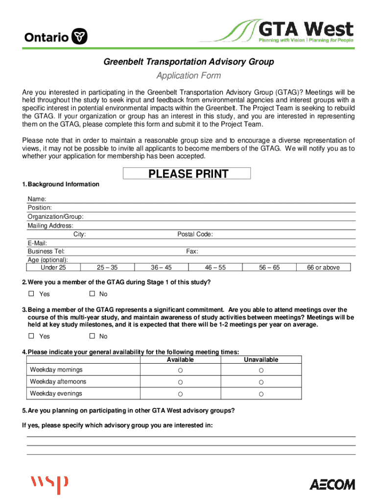 Individuals or organizations seeking to be involved in the greenbelt transportation advisory group must file this application.