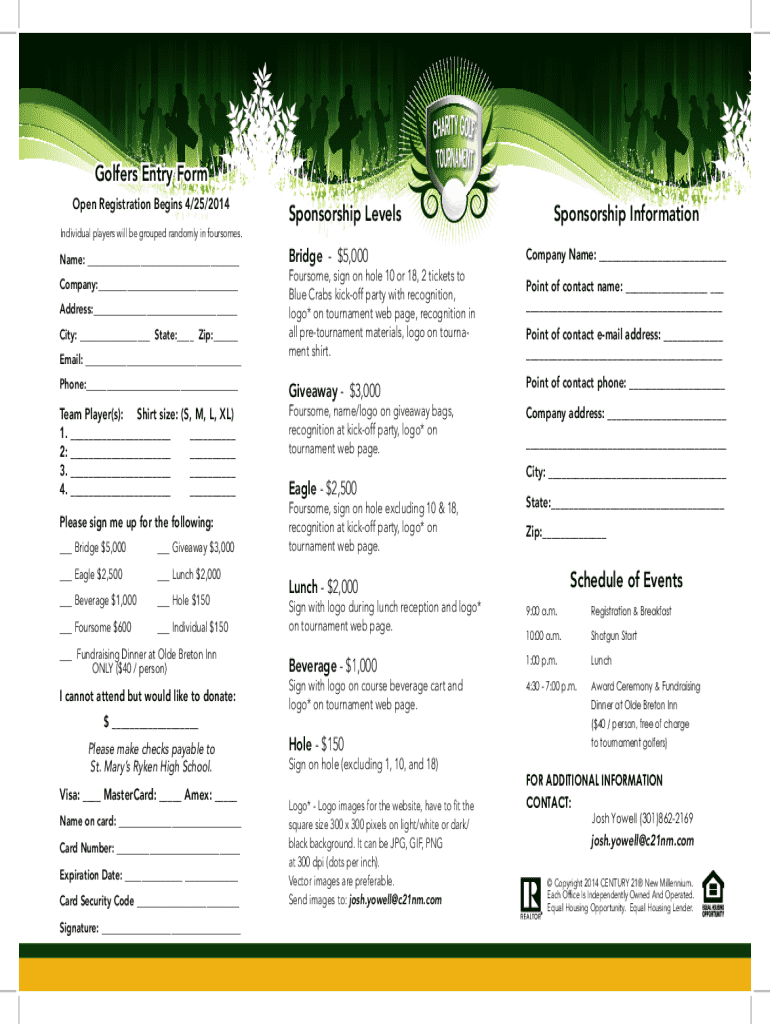 All participants wishing to enter a golf tournament are required to file a golfer's entry form to ensure their registration.