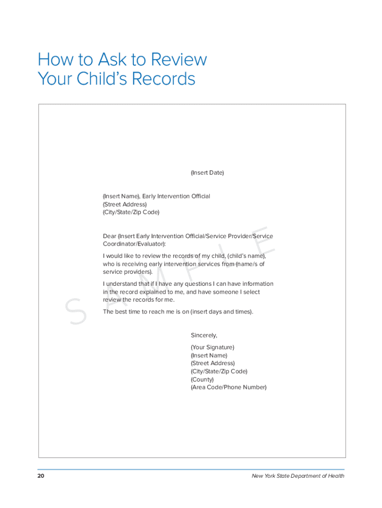 How to Ask to Review Your Child's Records(Insert Date)(Insert Name), Early Intervention Social (Street Address) (City/State/Zip Code)E L P M A S Dear (Insert Early Intervention Social/Service Provider/Service