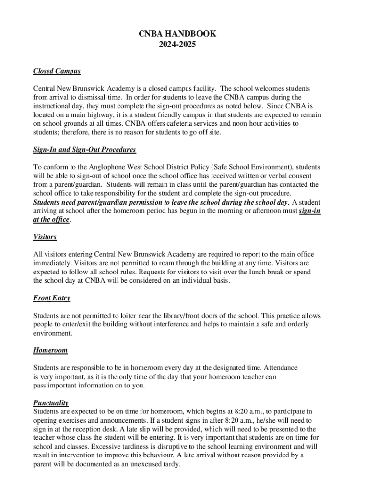 CUBA HANDBOOK 20242025 Closed Campus Central New Brunswick Academy is a closed campus facility. The school welcomes students from arrival to dismissal time. In order for students to leave the CUBA