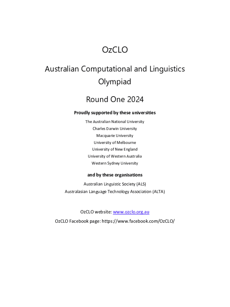 Oslo Australian Computational and Linguistics Olympiad Round One 2024 Proudly supported by these universities The Australian National University Charles Darwin University Macquarie University of Melbourne