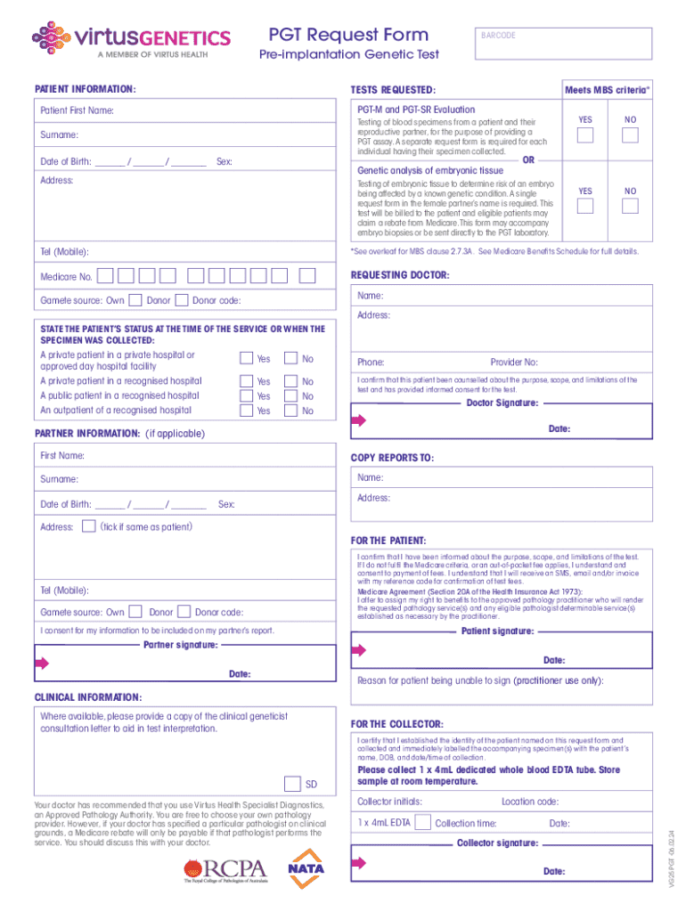 Edit your pgt-m amp pgt-apreimplantation genetic form online