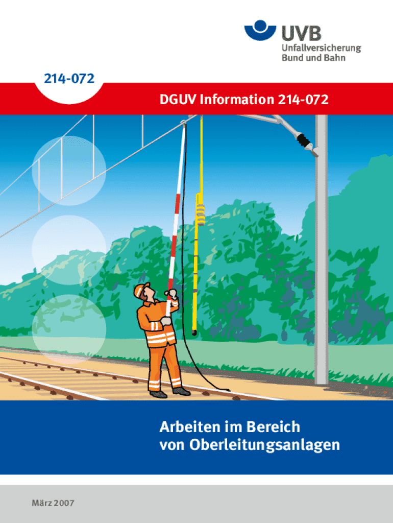 Holen Sie sich kostenlos DGUV Information 214-072 Arbeiten im Bereich von Oberleitungslanlagen (b...