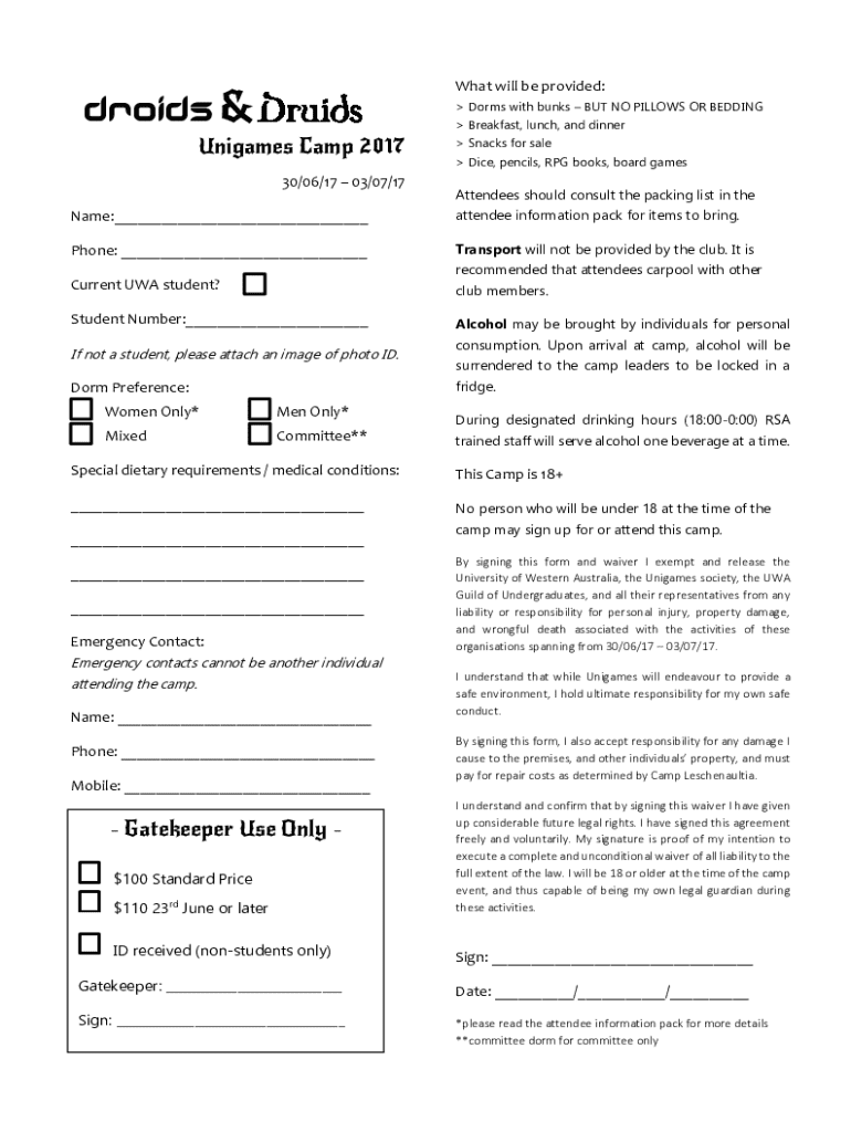 Breakfast, lunch, and dinnerUnigames Camp 2017