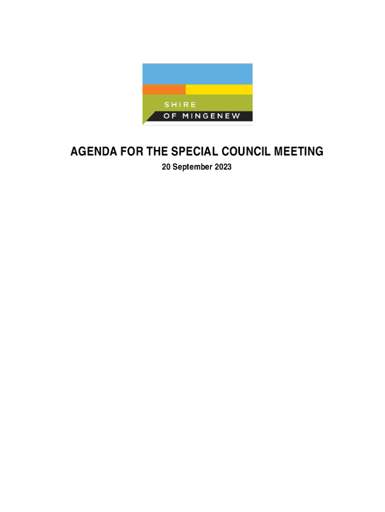 Get the free Special Council Meeting Agenda - mingenew wa gov
