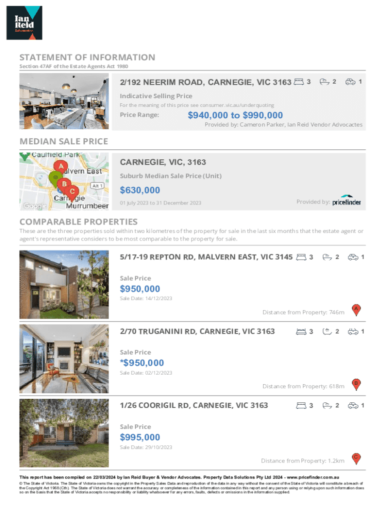STATEMENT OF INFORMATION Section 47AF of the Estate Agents Act 19802/192 NEE RIM ROAD, CARNEGIE, VIC 3163312Indicative Selling Price For the meaning of this price see consumer.vic.au/underquotingPrice