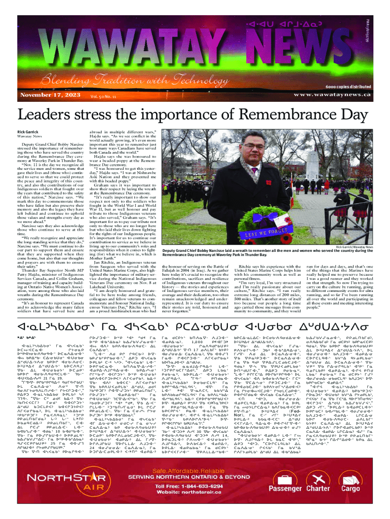 PM#0382659799Northern Ontario's First Nation Voice since 1974Blending Tradition with Technology November 17, 20236000 copies distributed.wawataynews.Carol. 50 No. 11Leaders stress the importance of