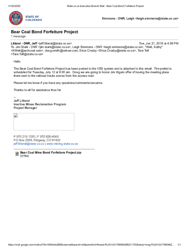 This document details the bidding process for the Bear Coal Bond Forfeiture Project in Colorado, specifying timelines, procedures, and requirements for contractors.