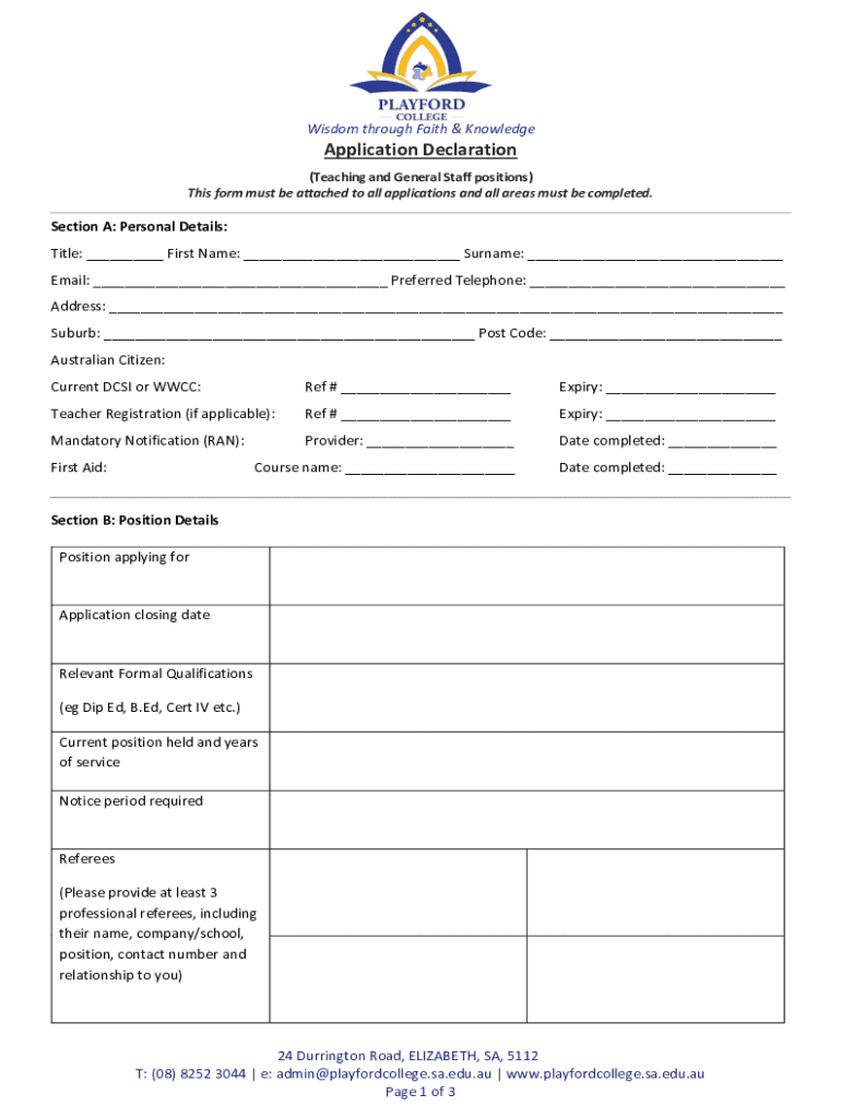 Get, Create, Make and Sign application declaration