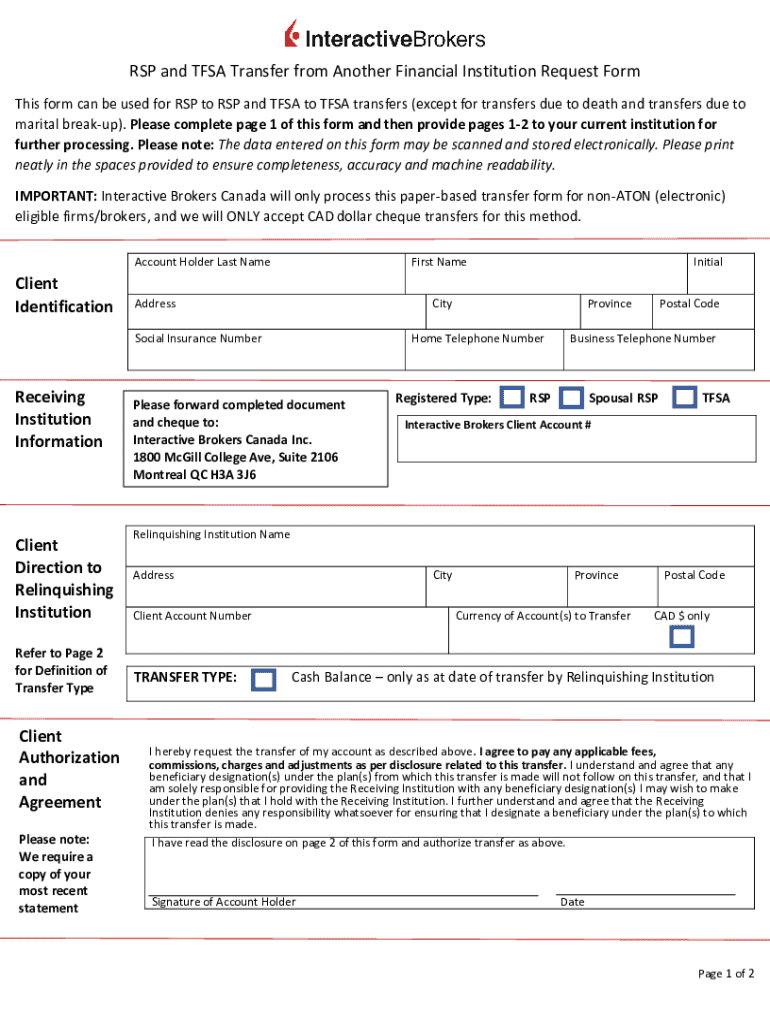Get the free RSP and TFSA Transfer from Another Financial Institution ...