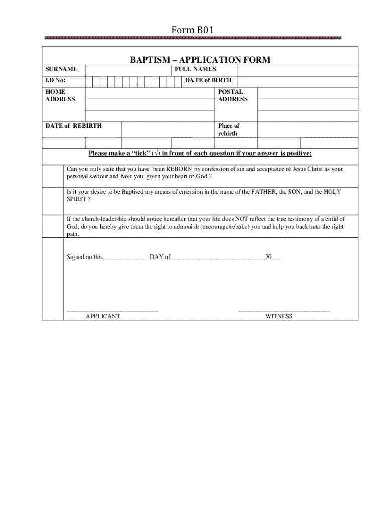 Get the free Form B01