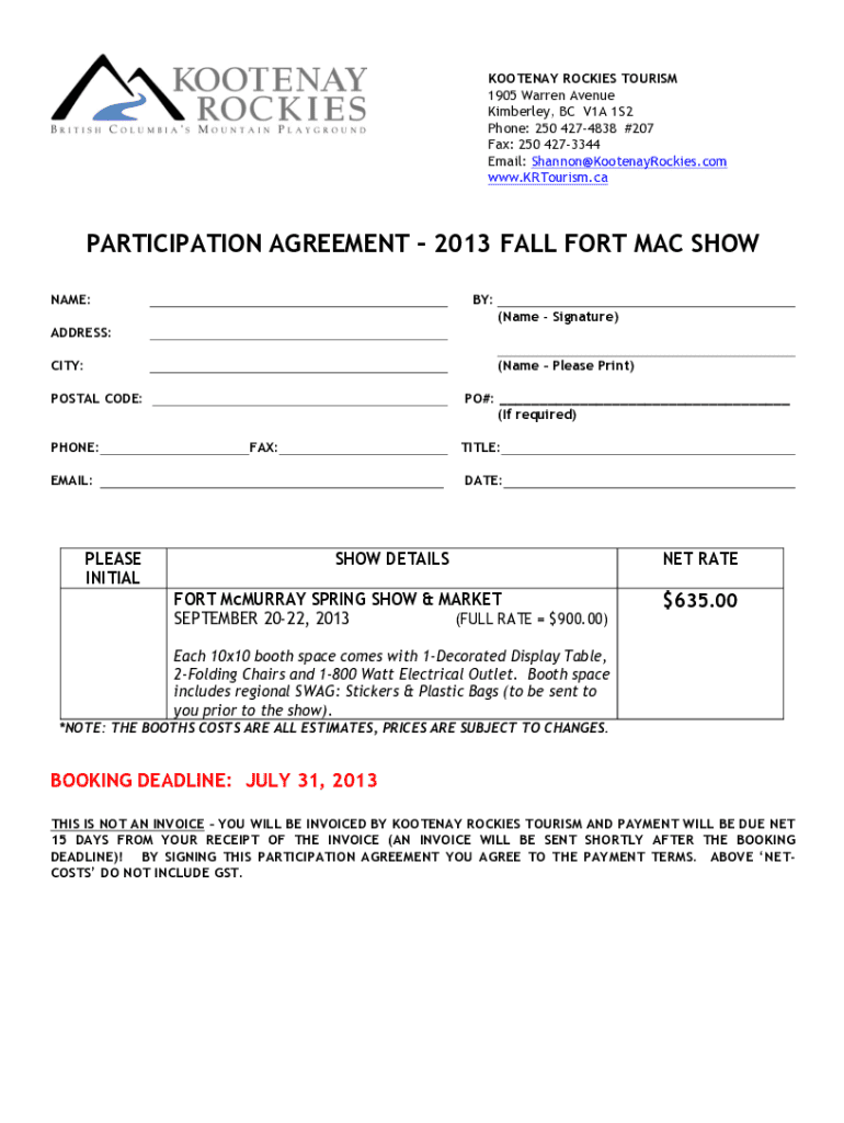 www.KRTourism.caPARTICIPATION AGREEMENT 2013 FALL FORT