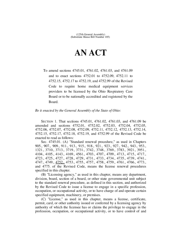 This document outlines the licensing requirements for home medical equipment services providers in Ohio, ensuring compliance with the respiratory care board\'s standards.