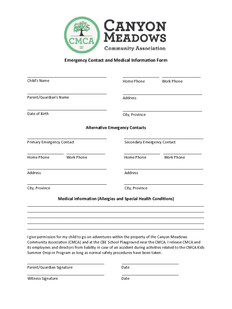 Emergency Contact and Medical Inform on Form