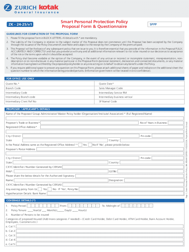 Complete the Smart Personal Protection Policy Proposal Form 2024 for comprehensive coverage including fraud, gadget, ATM, and personal accident protection.