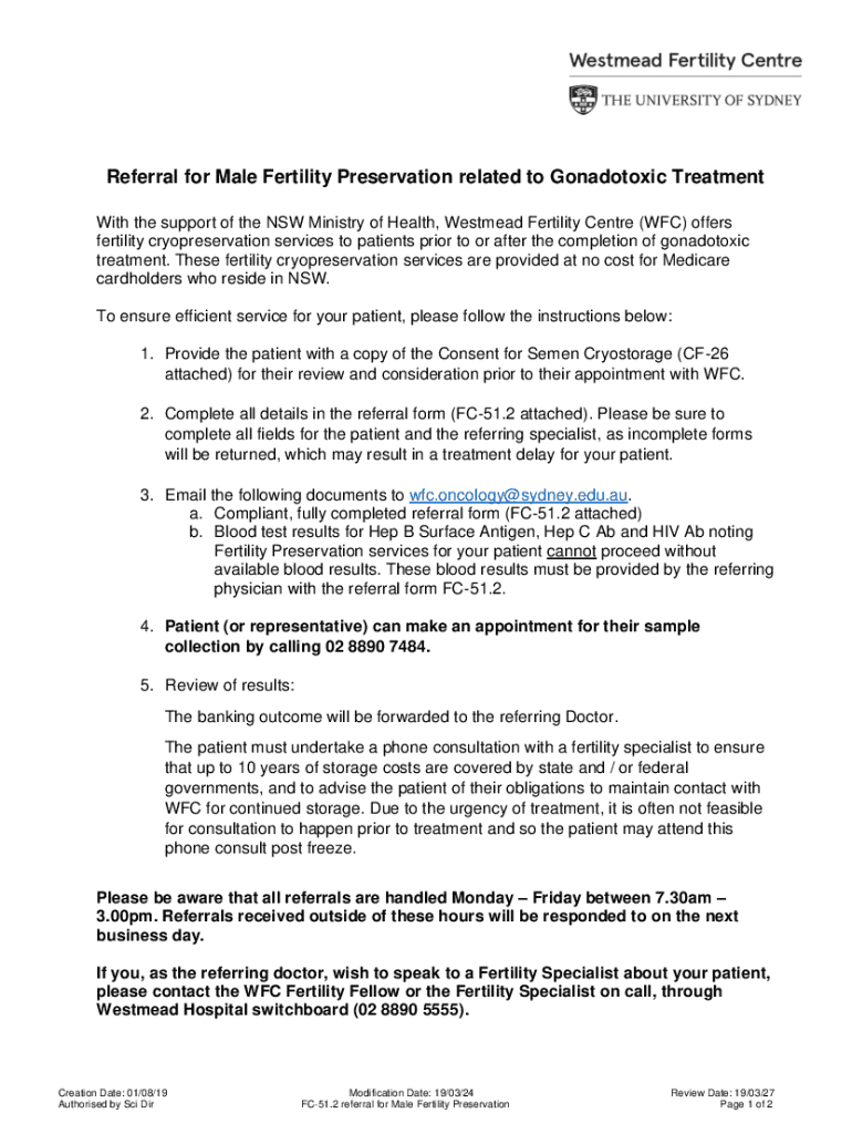 Get the free Fc-51.2 Referral for Male Fertility Preservation