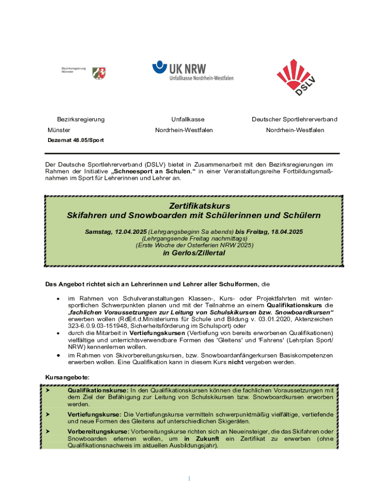 NordrheinWestfalenDezernat 48.05/SportDer Deutsche Sportlehrerverband (DSL) baited in Zusammenarbeit MIT den Bezirksregierungen