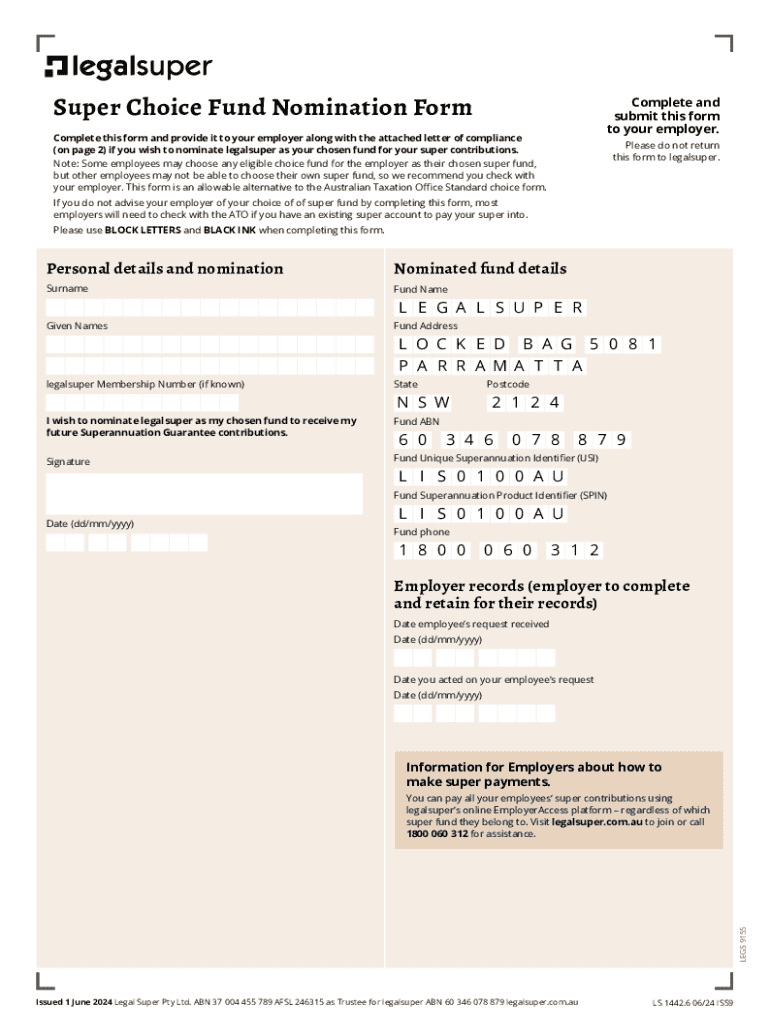 Nominate legal super as your super fund with this 2024 submission form. Ensure compliance with ATO standards for your super contributions.