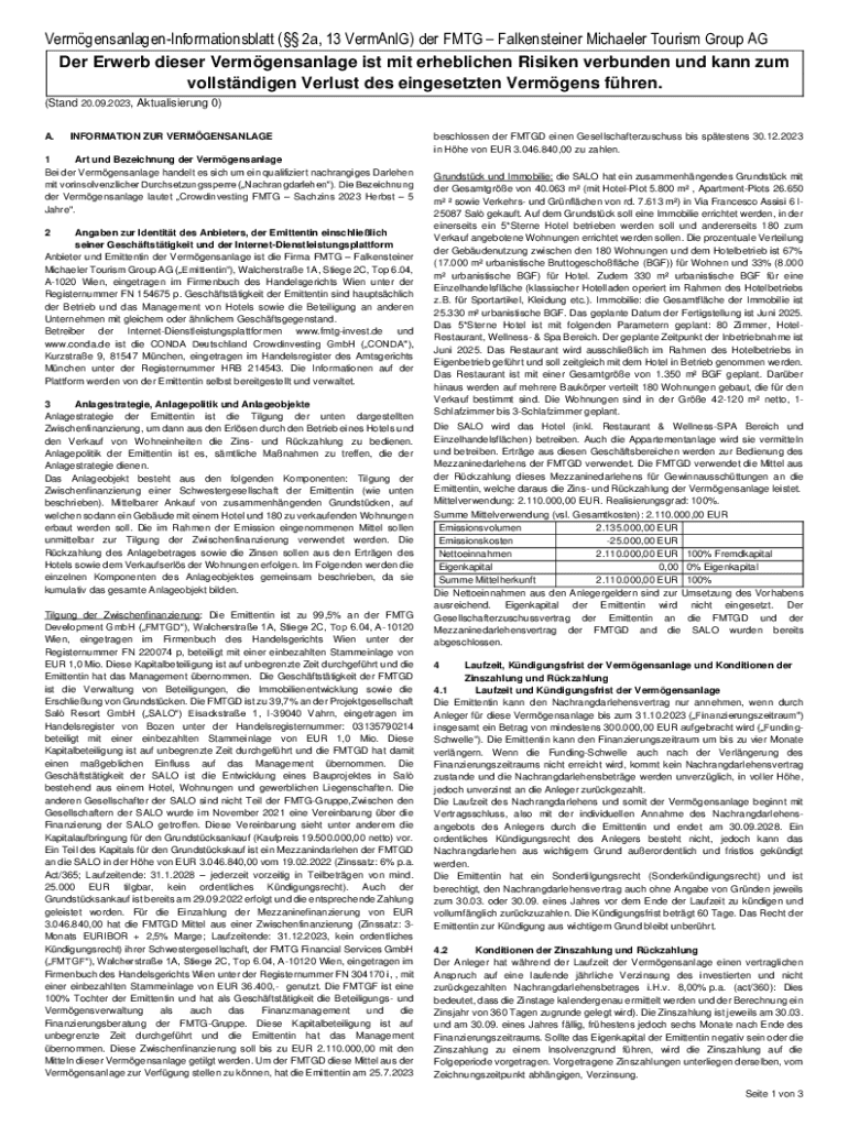 VermgensanlagenInformationsblatt (2a, 13 German) her MTG Falkensteiner Michael er Tourism Group AG