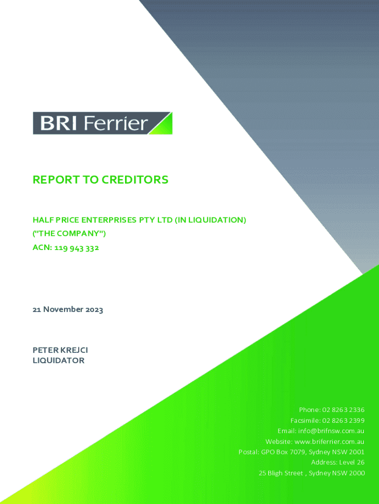 HALF PRICE ENTERPRISES PTY LTD (IN LIQUIDATION)