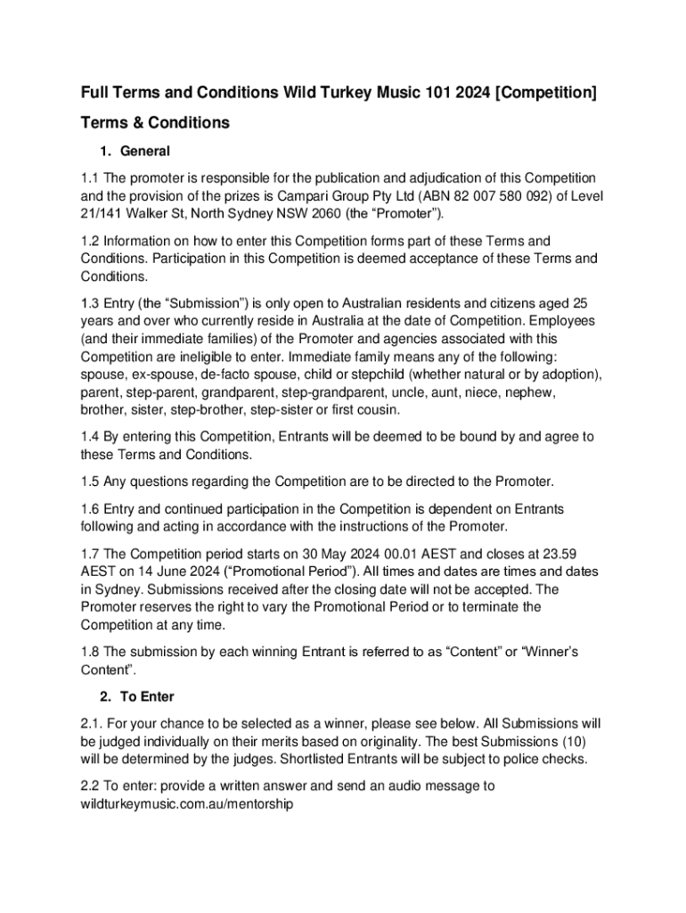Get the free Wild Turkey Music 101 Competition Terms and Conditions