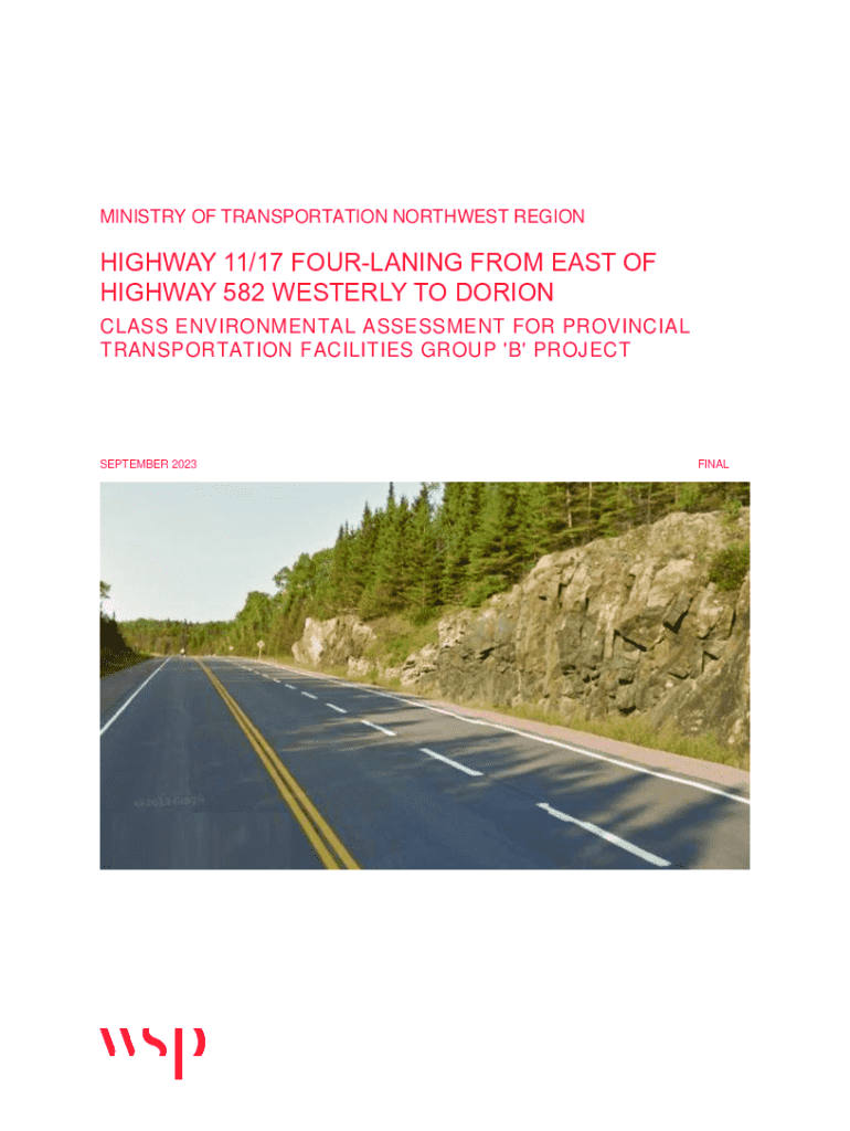 MINISTRY OF TRANSPORTATION NORTHWEST REGIONHIGHWAY 11/17 MOURNING FROM EAST OF