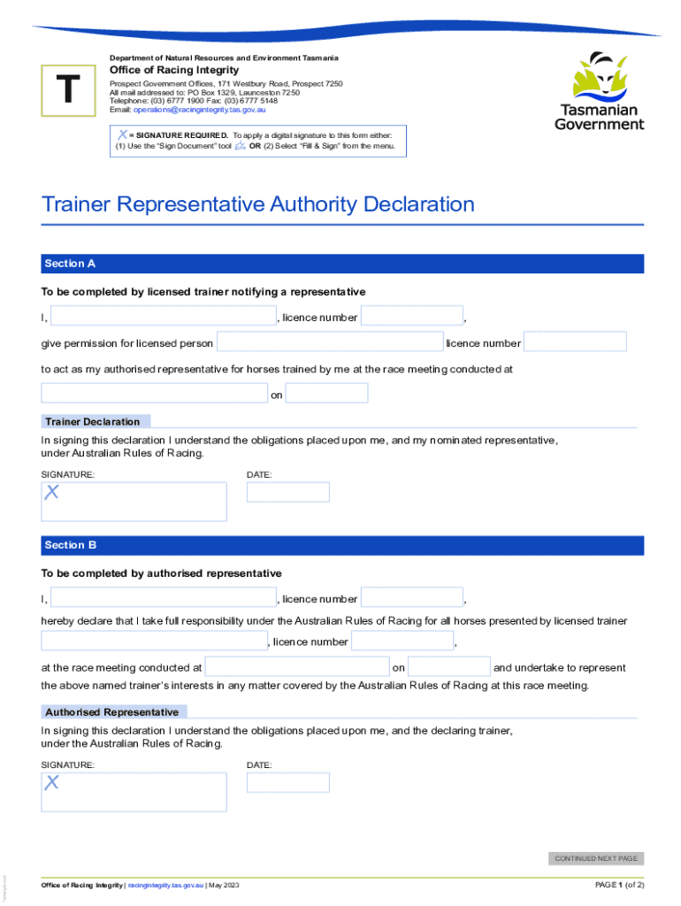 Department of Natural Resources and Environment TasmaniaTOffice of Racing Integrity Prospect Government Offices, 171 West bury Road, Prospect 7250 All mail addressed to: PO Box 1329, Launceston 7250