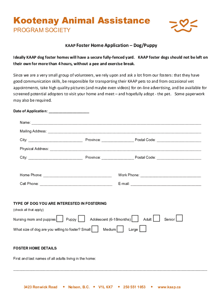 Get the free Kaap Foster Home Application – Dog/puppy