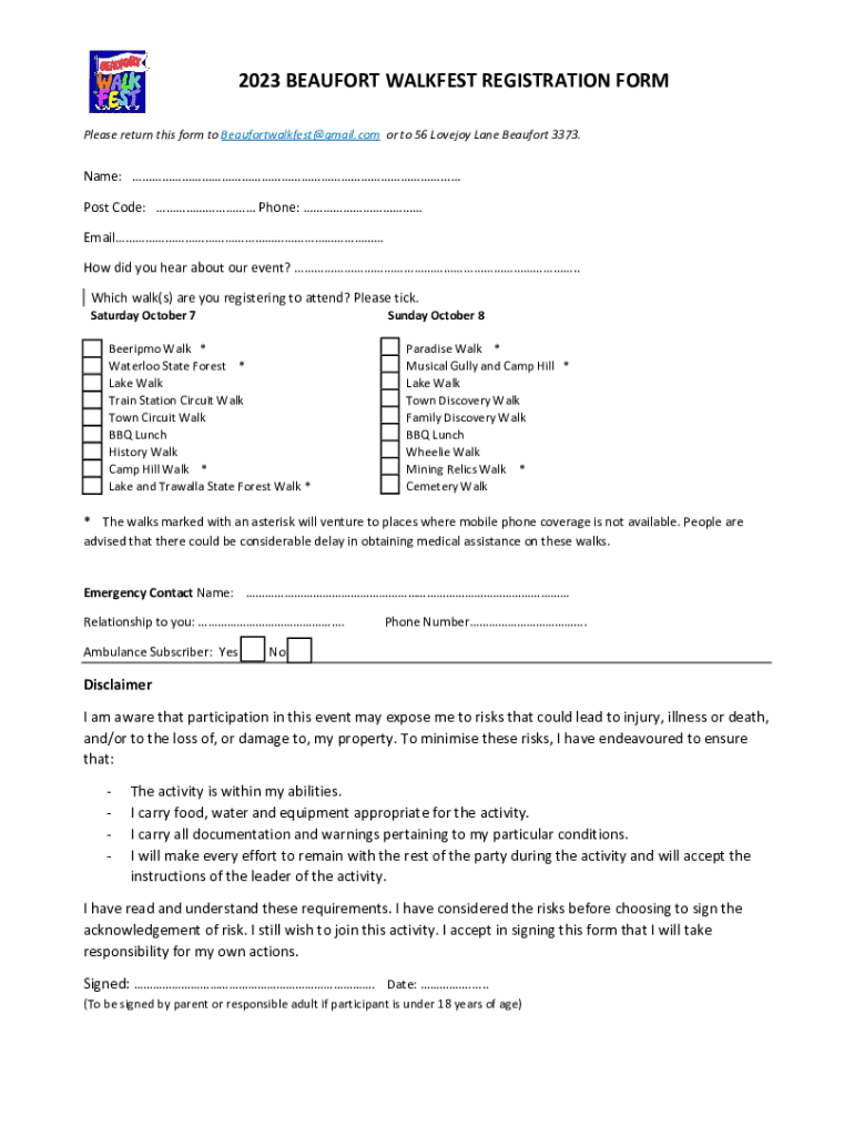 Beaufort Walkfest Registration Form is not the form you're looking for?Search for another form here.