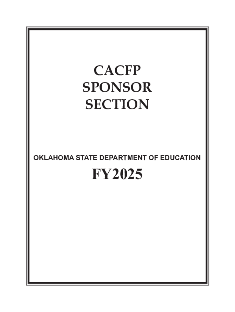 CACFP SPONSOR SECTIONOKLAHOMA STATE DEPARTMENT OF EDUCATIONFY2025In accordance with federal civil rights law and U.S. Department of Agriculture (USDA) civil rights regulations and policies, this institution