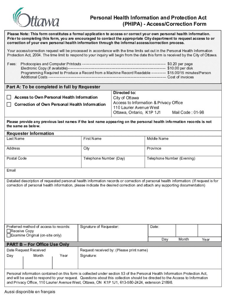 Request access or correction of your personal health information under PIPA. Ensure proper submission to the City of Ottawa for timely processing.