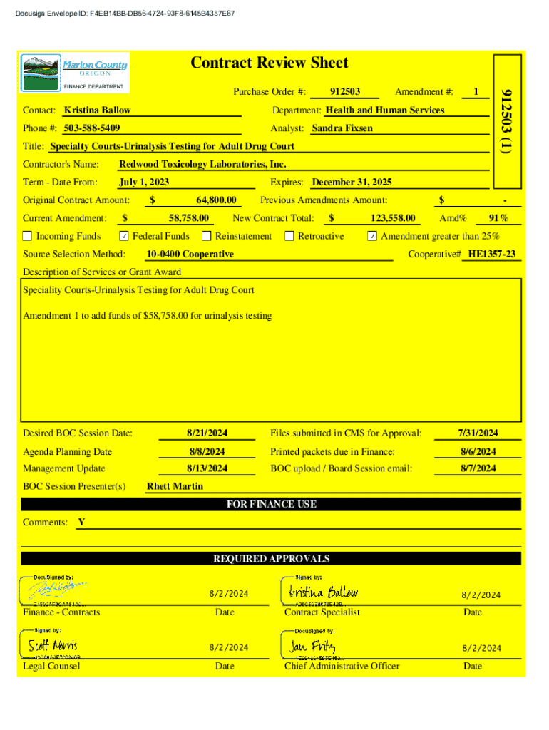 DocuSign Envelope ID: F4EB14BBDB56472493F86145B4357E67Contract Review Sheet