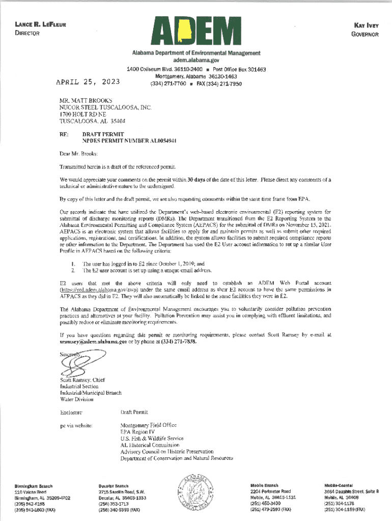 LANCE EMR. LEFLEURDIRECTORKAY IVEY GOVERNOR Alabama Department of Environmental Management Adam.Alabama.gov 1400 Coliseum Blvd. 361102400 Post Office Box 301463 Montgomery, Alabama 361301463 (334)